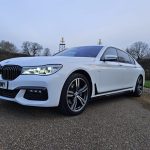 Our vehicle is a nearly new white BMW 3 Series M Sport. It includes a high spec interior with features such as independent heated seats, independent climate control, independent massage seats & seating positioning, WiFi, rear TVs, navigation, multiple mood lighting options and a panoramic sunroof front and rear.