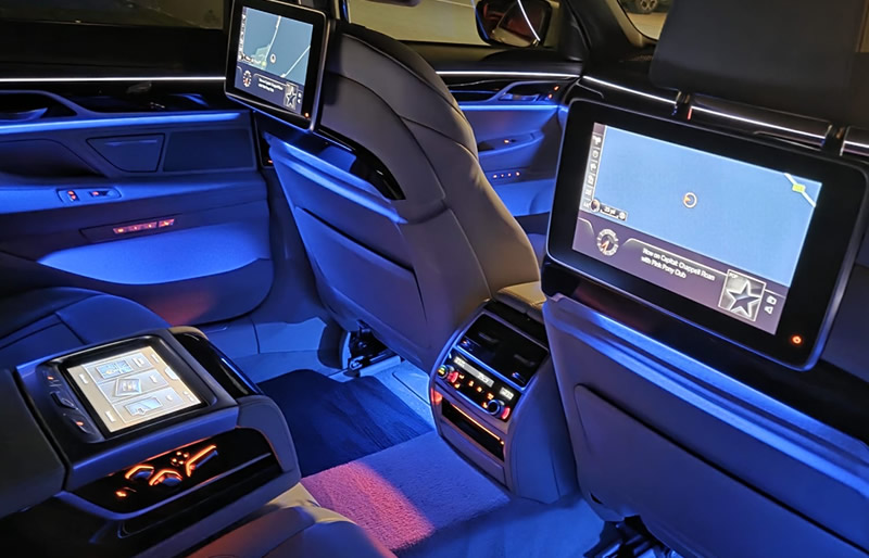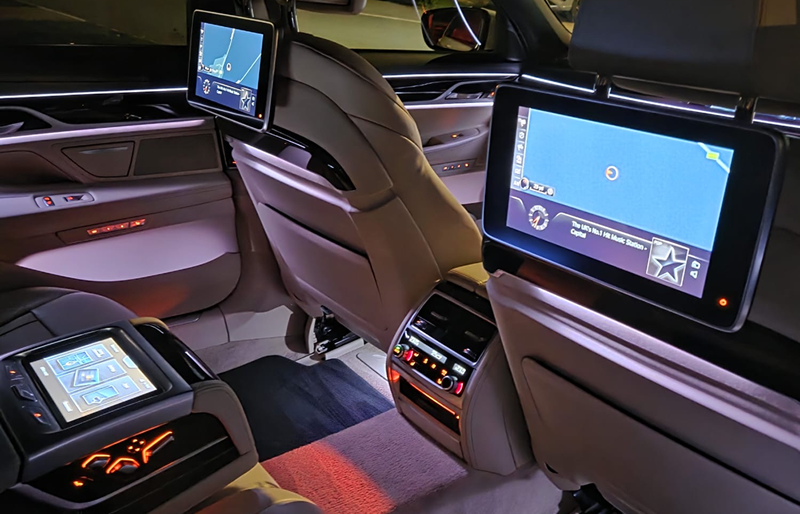 Our vehicle is a nearly new white BMW 3 Series M Sport. It includes a high spec interior with features such as independent heated seats, independent climate control, independent massage seats & seating positioning, WiFi, rear TVs, navigation, multiple mood lighting options and a panoramic sunroof front and rear.